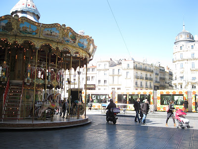 On Monday I had my first French class, and that meant going into the city of Montpellier itself. Fortunately, Montpellier has a very clean, efficient public transportation system, consisting of buses and four tram lines. My host sister accompanied me to and from the city on Monday, and since then I've been doing it on my own. I find that I actually enjoy the trip. Montpellier is a small city, so the public transportation isn't as hectic and crowded as it might be elsewhere.